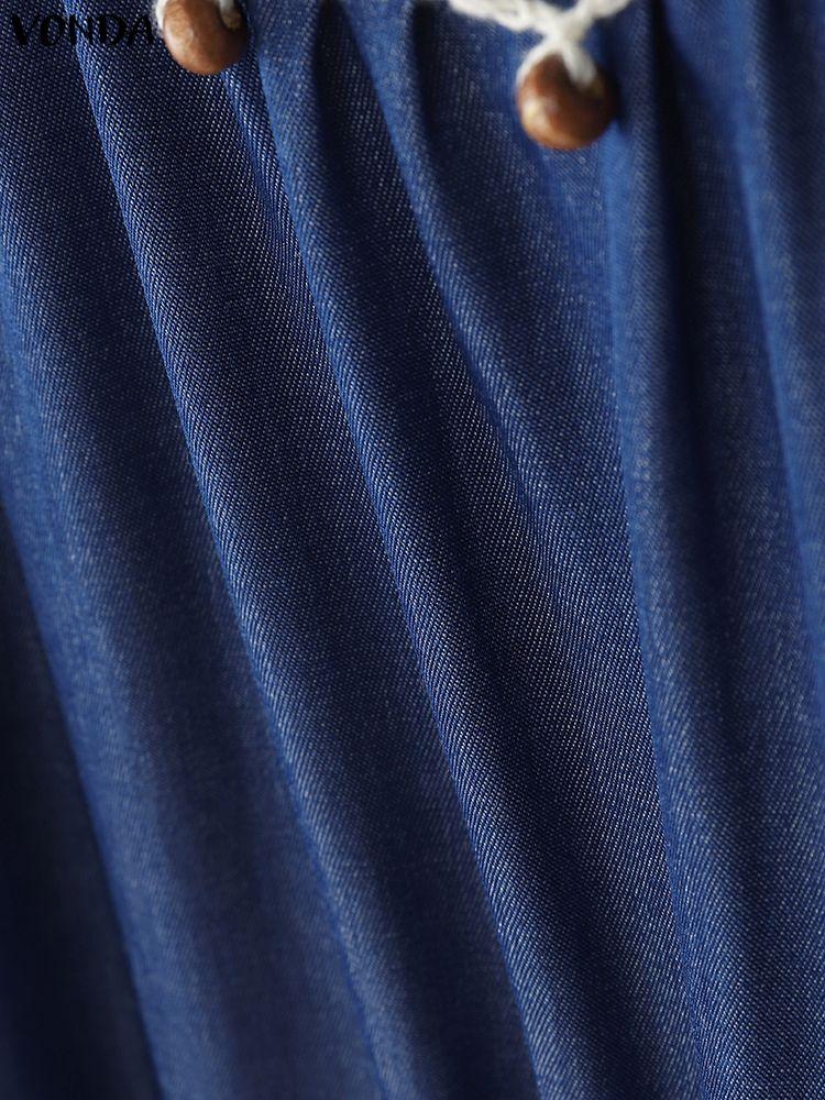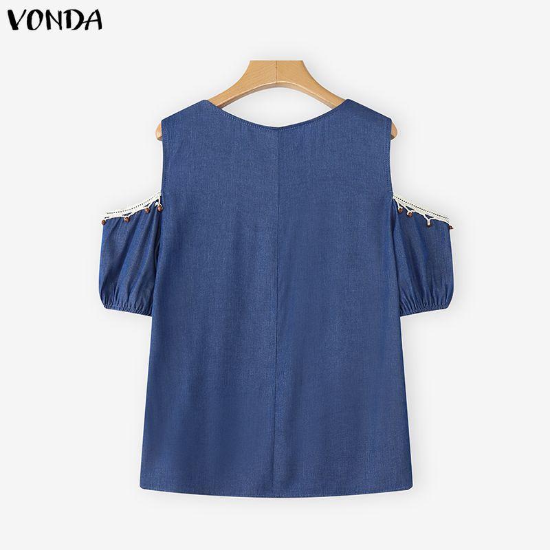 VONDA Летняя женская повседневная блузка с круглым вырезом, открытыми плечами, кружевом, бисером и короткими рукавами