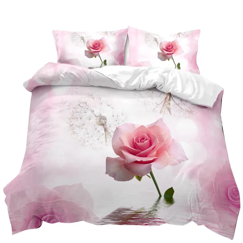 Комплект постельного белья с рисунком розового цвета Комплект постельного белья с рисунком розового цвета Комплект постельного белья с цветочным узором для девочек и женщин Элегантный комплект постельного белья из полиэстера