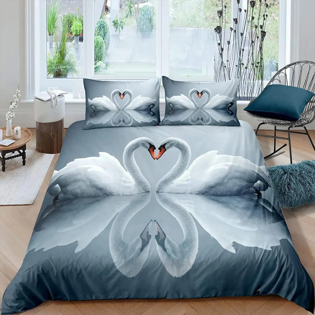 Пододеяльник с изображением лебедя, черно-белый пододеяльник с изображением лебедя, королева, птица, одеяло, чехол из микрофибры, романтический цветок, дикие животные, пододеяльник