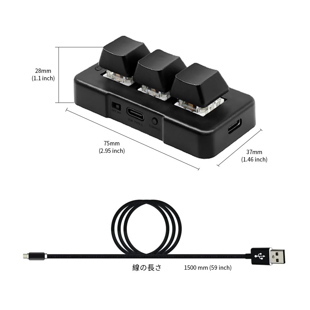 Программируемая USB-клавиатура с 3 клавишами, Тихая, Красные переключатели, 3-слойная функция, Макро-клавиатура, Устройство для левой руки для стриминга, DTM, Рисования, Видеомонтажа,