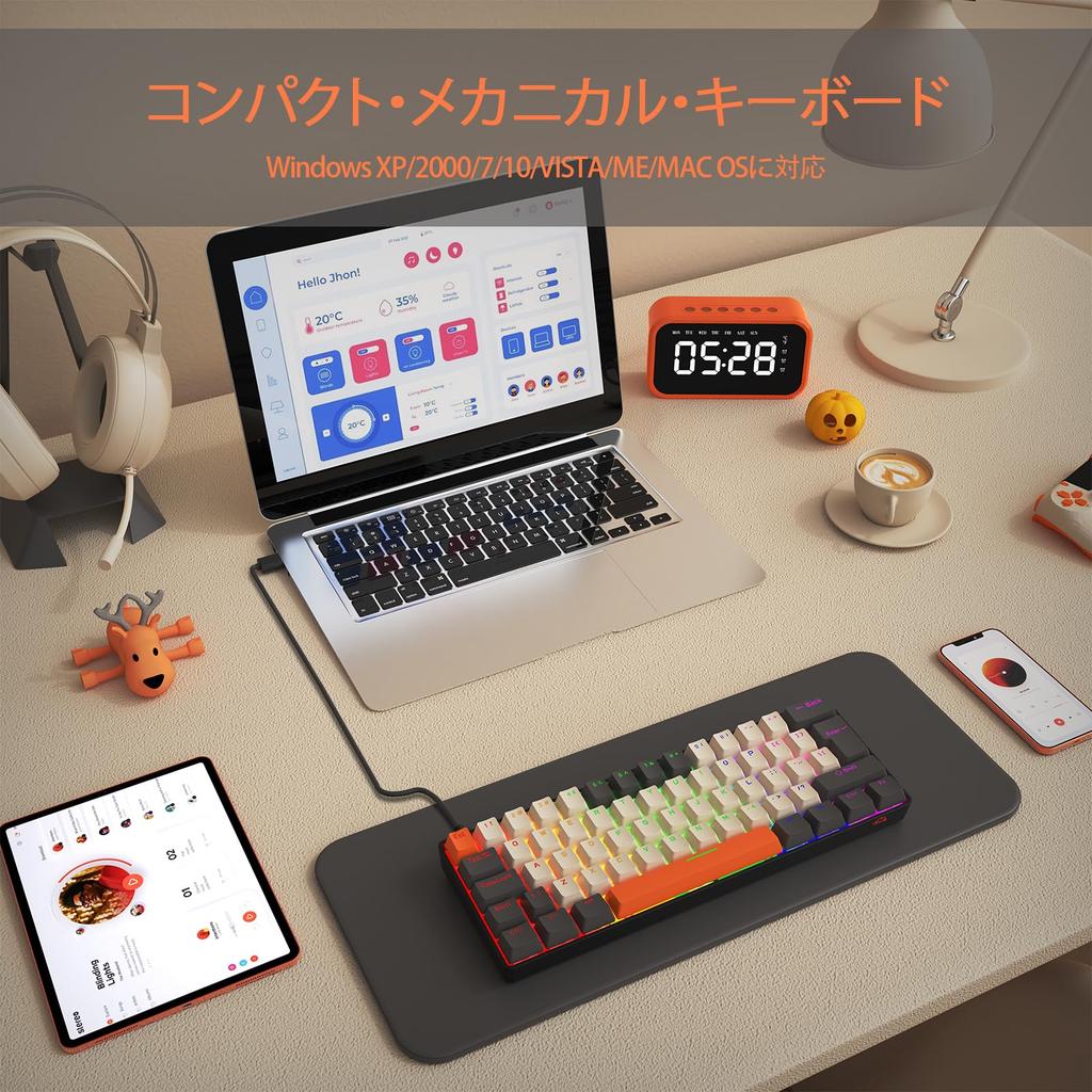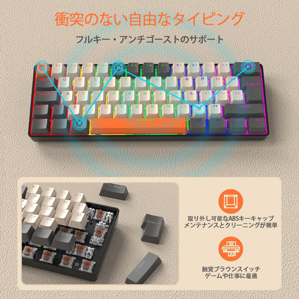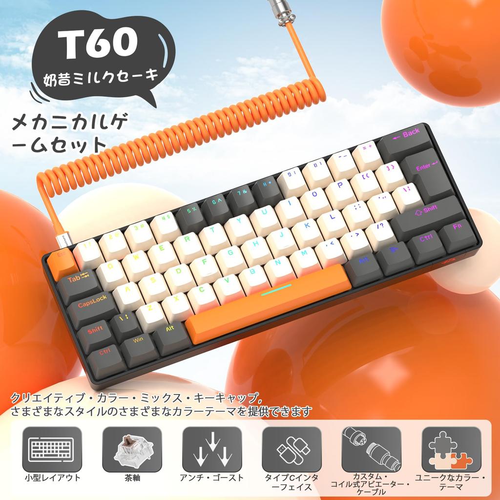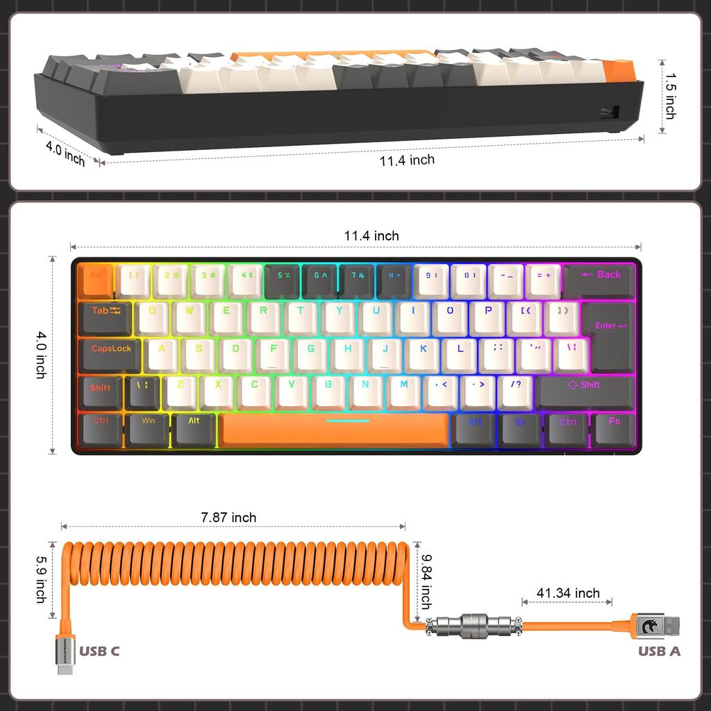 Игровая клавиатура ZIYOULANG T60, Механическая клавиатура с коричневыми переключателями, 60% Компактная, Проводное подключение, Без цифрового блока, 62 клавиши, Цветовая блокировка, 19 RGB