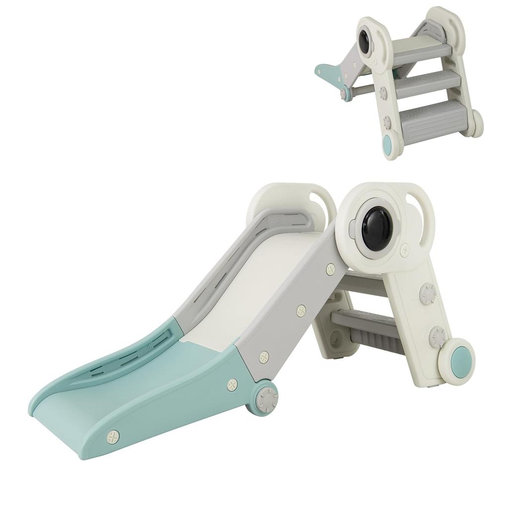 GYMAX Детская горка для дома, Складная горка, 18,5" Ш x 47,5" Г x 21,5" В, Легкая сборка, Безопасная конструкция, Компактное хранение, Поручни с удобным захватом, Нескользящая