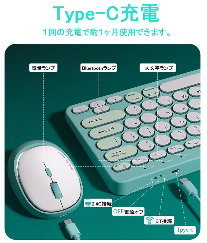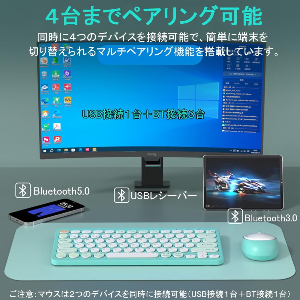 [Множественное подключение, 2,4 ГГц и Bluetooth 5.0] Беспроводной набор клавиатуры и мыши, Милый, Поддержка нескольких сопряжений, Поддержка до 4 устройств одновременно, Тихий,
