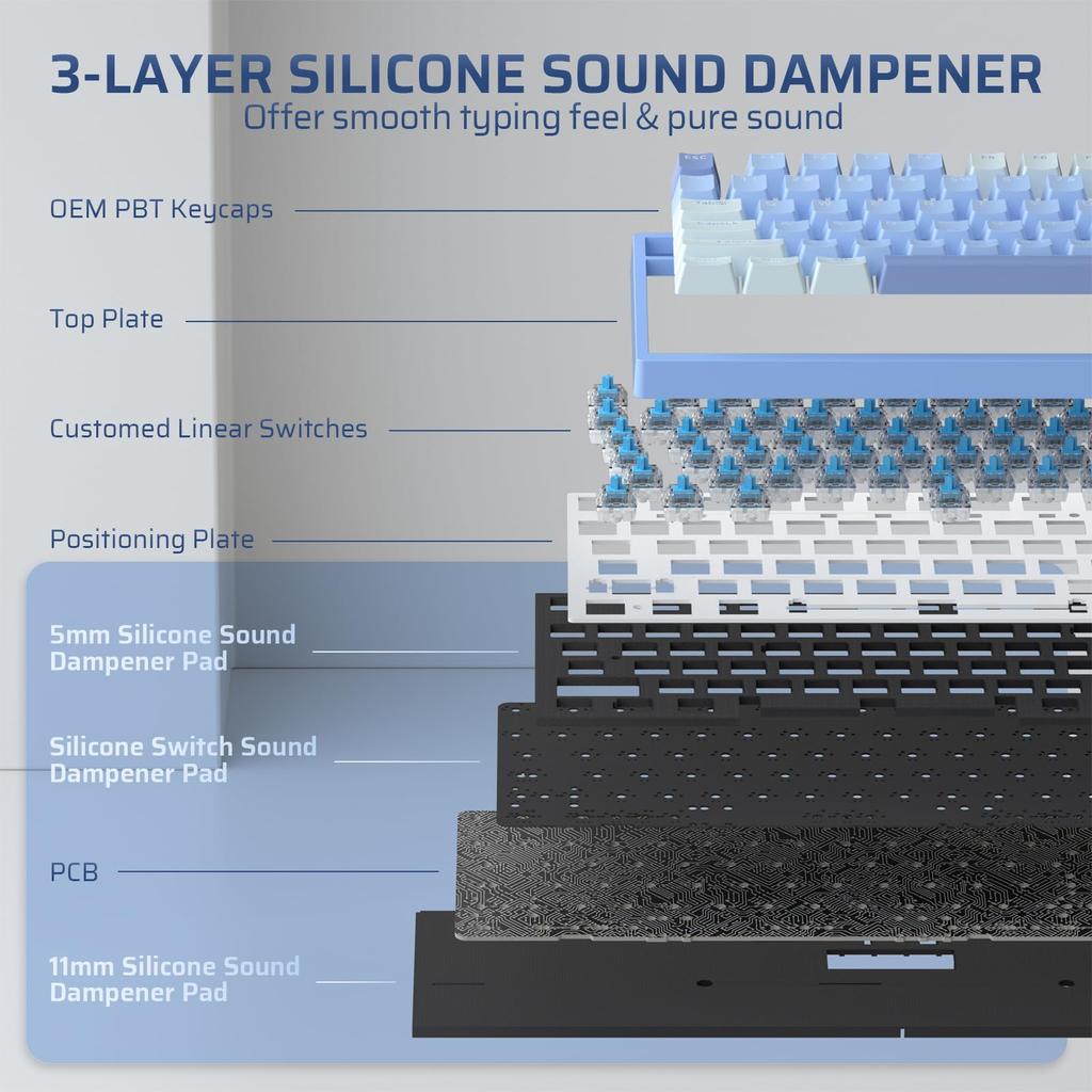 LTC Nimbleback NB981 95% Wireless Mechanical Keyboard, 2.4GBTUSB-C Wired RGB 98-Key Gaming Keyboard with 3-Layer Damper, Hot-Swap PCB, Software