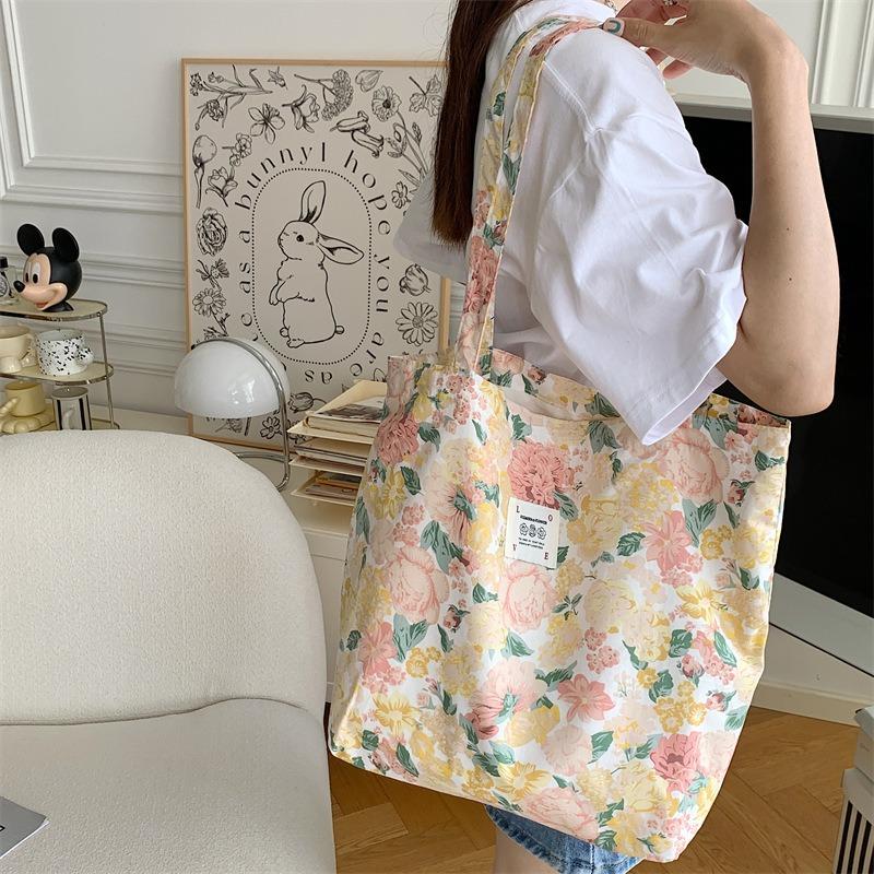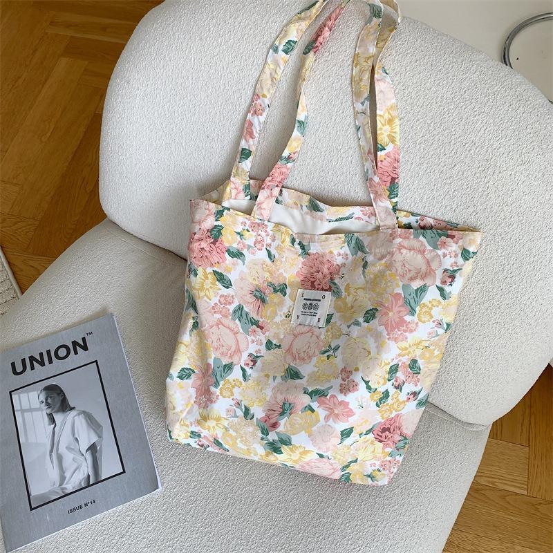 1 Новая сумка-тоут большой вместимости с цветочным принтом, холщовая на плечо, портативная, студенческая сумка для покупок