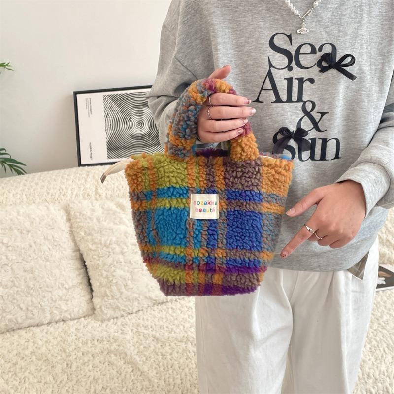 11 Новая зимняя плюшевая сумка женская сумка для бенто в горошек сумка для покупок для работы — купить товар онлайн с бесплатной доставкой по всему миру!