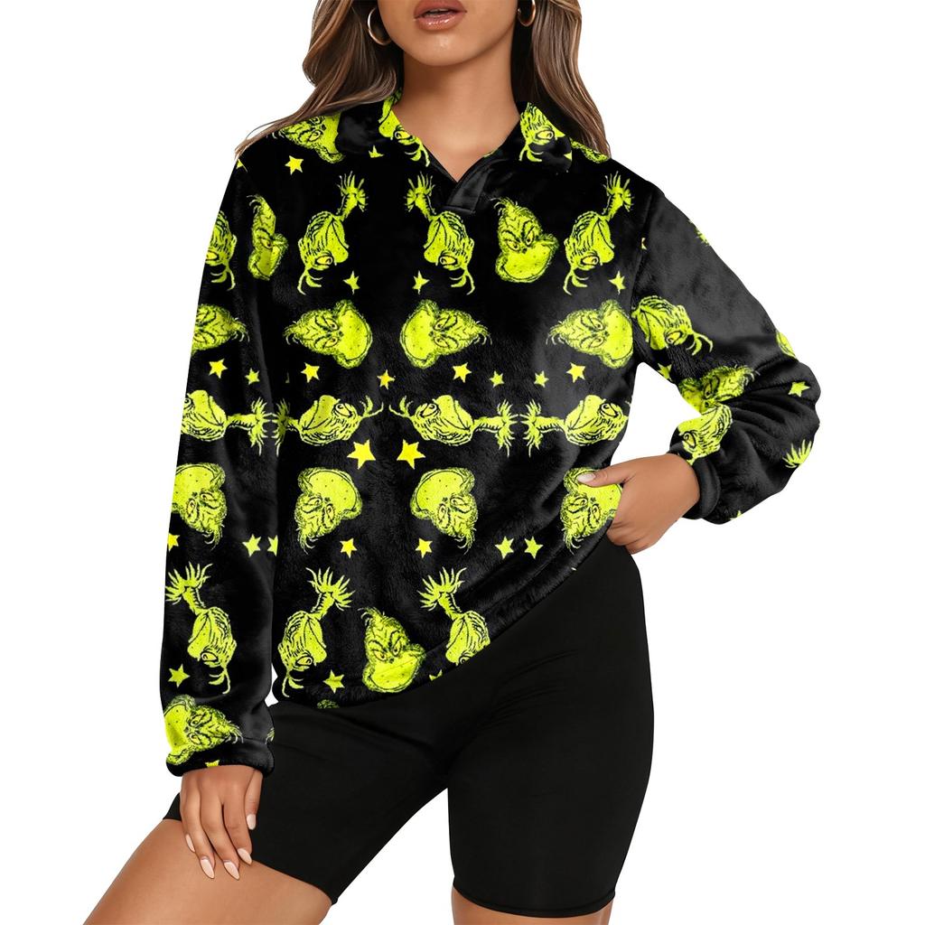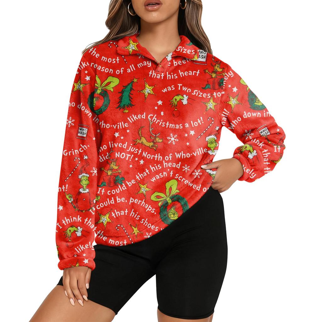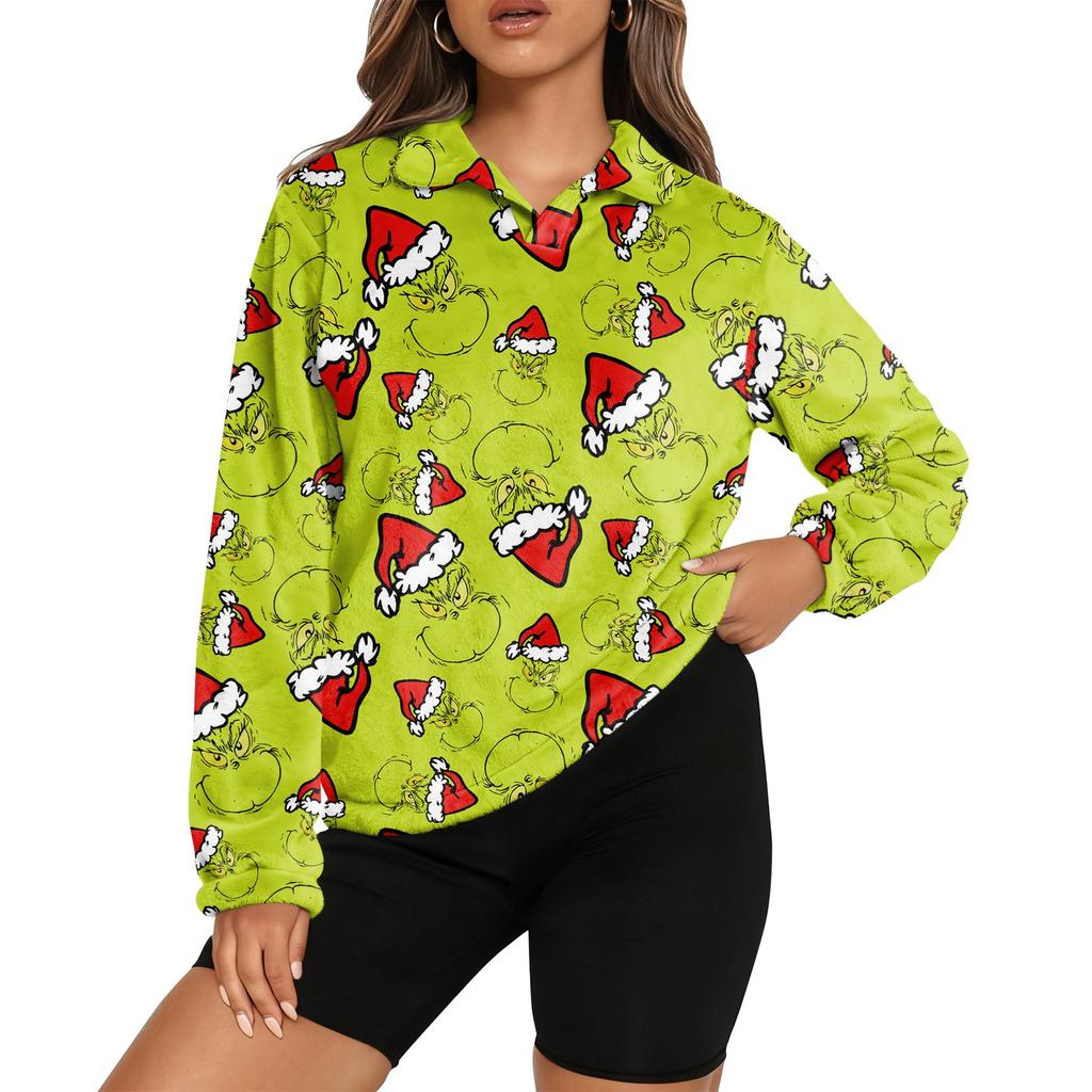 Женский пуловер с воротником-стойкой, топ с длинным рукавом, принт к Рождеству, спортивный топ