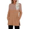 Женские свитера с круглым вырезом, рубашки с длинным рукавом и карманами, осенние наряды, модная зимняя одежда, боковой разрез