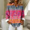 Женская рубашка-блузка с рождественским принтом и пуговицами, длинный рукав, повседневный базовый рубашечный воротник, обычный топ