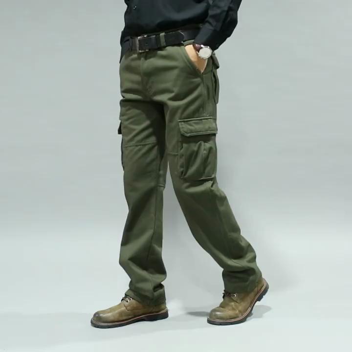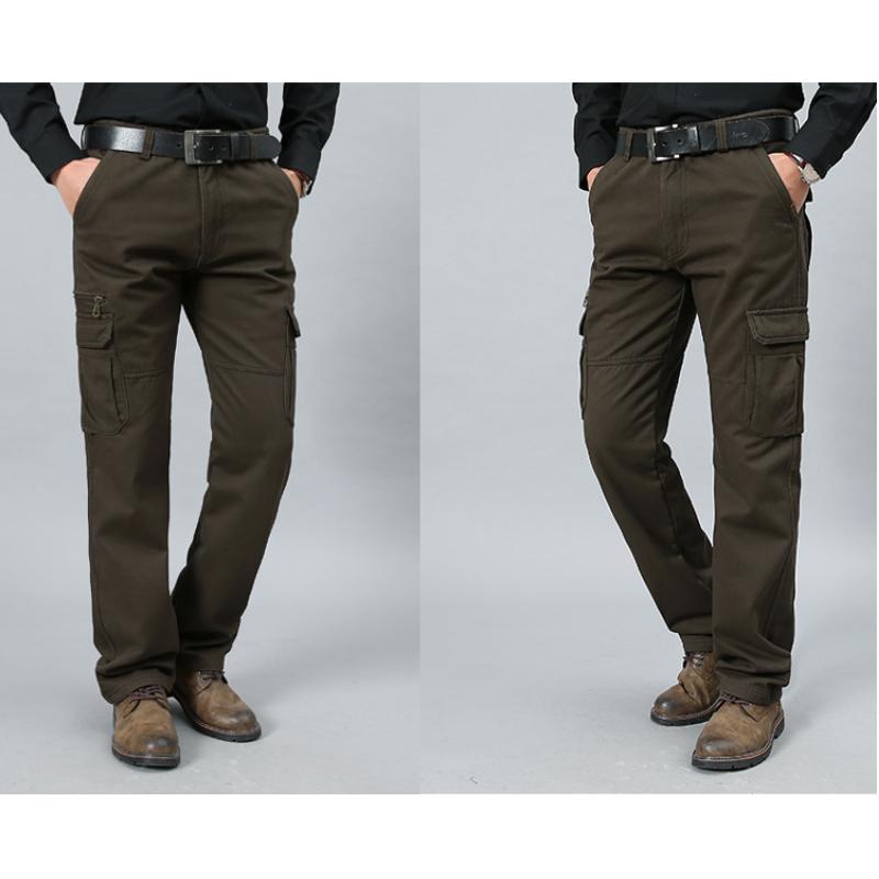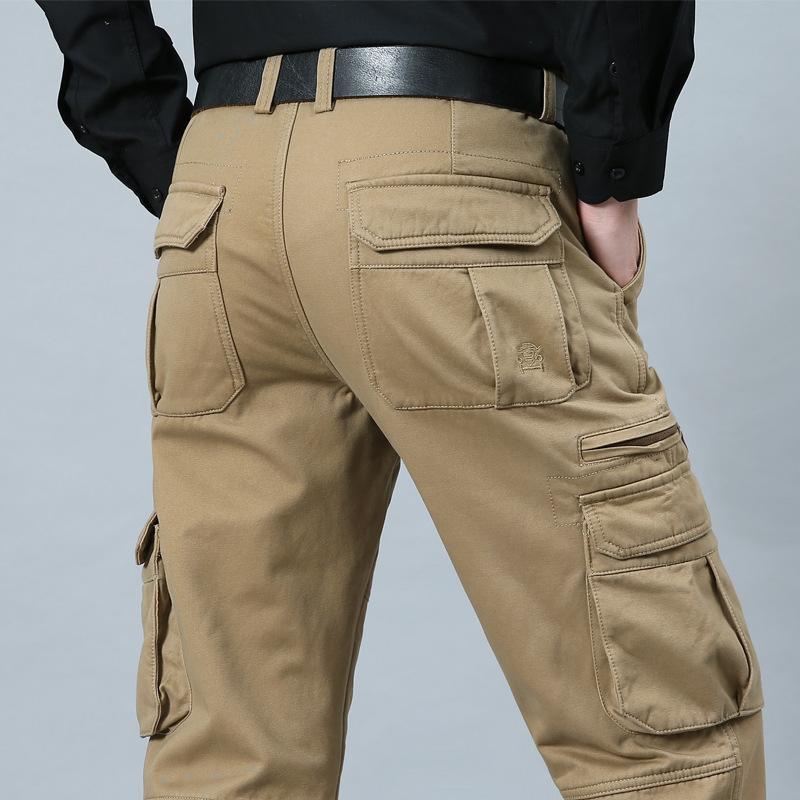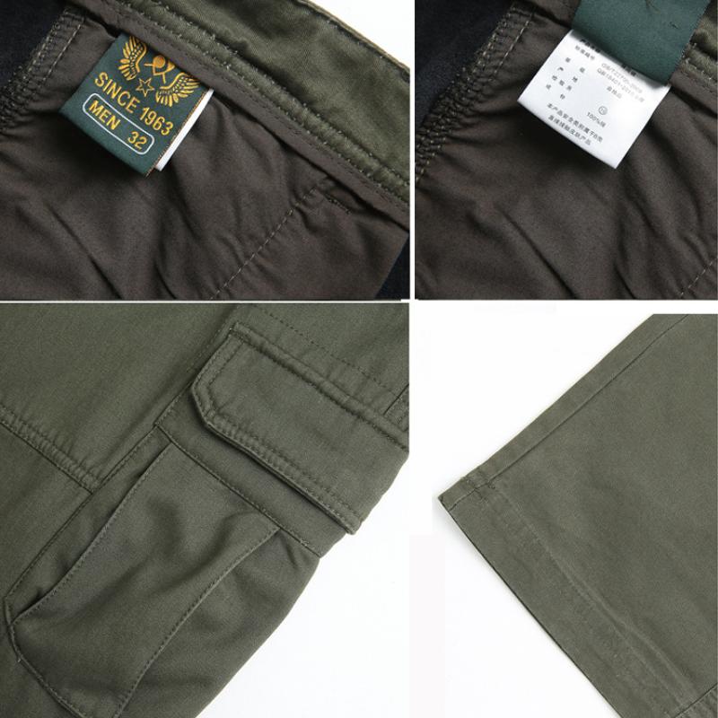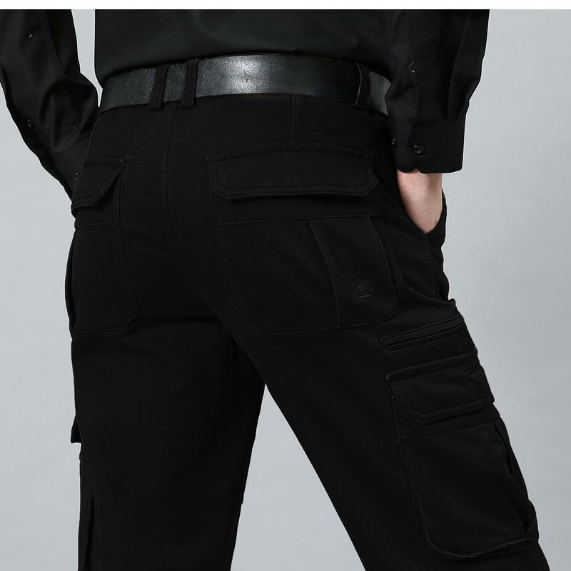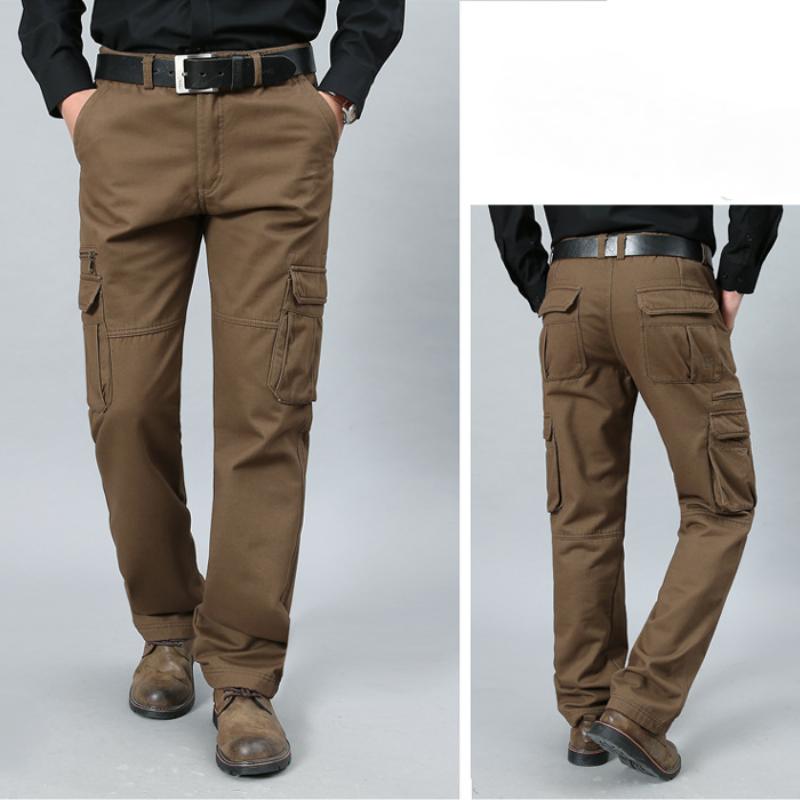 Мужские брюки прямого кроя большого размера, повседневные брюки карго с несколькими карманами, длинные брюки на все сезоны из чистого хлопка, со средней посадкой, с глубоким шаговым швом, для мужчин среднего и пожилого возраста