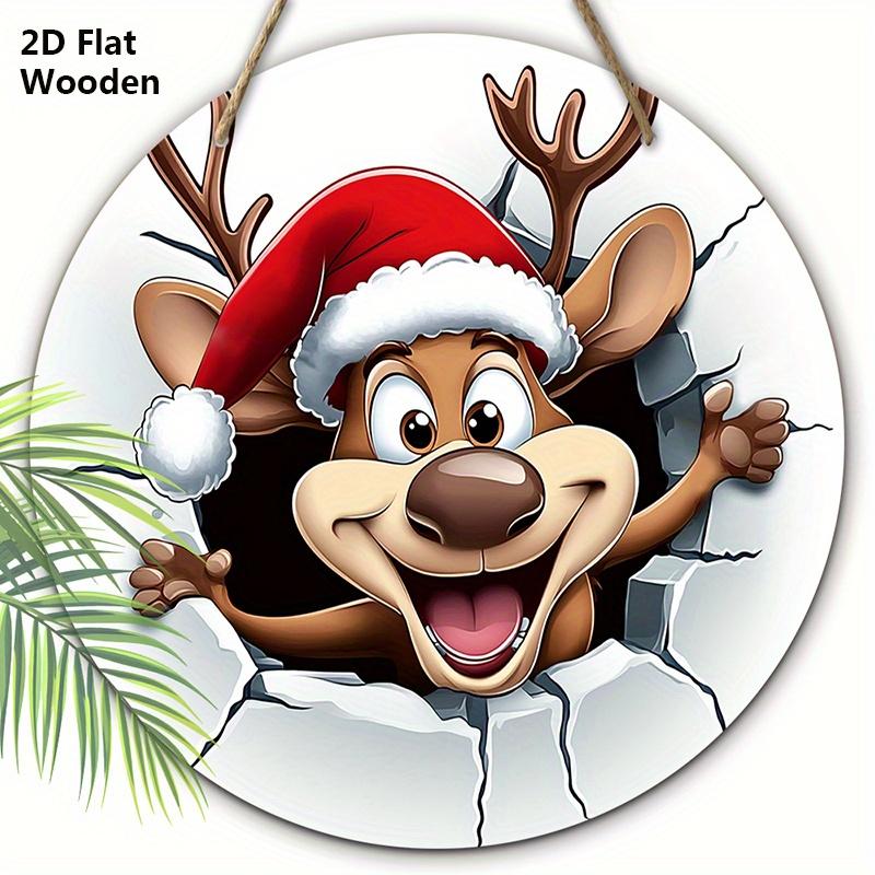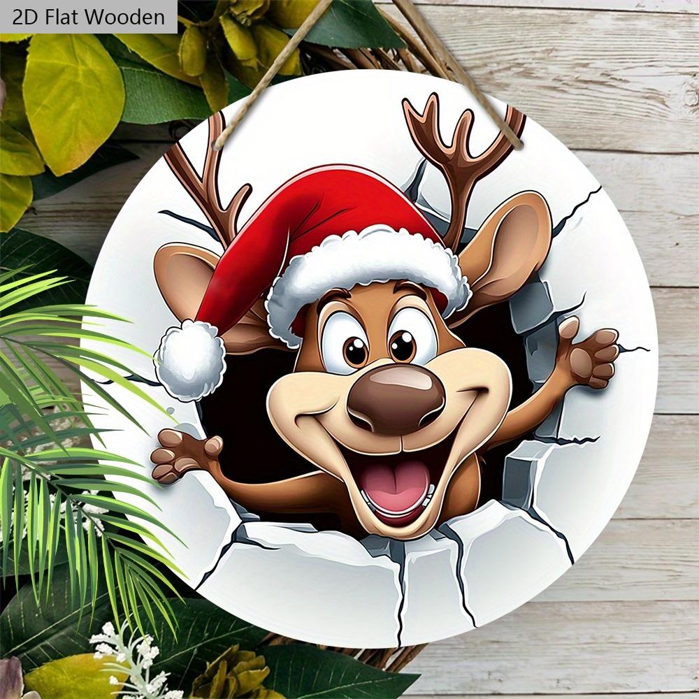 Мультяшный лось Рождественская деревянная табличка - Navidad Круглое произведение искусства для входной двери, настенный декор - Идеальное рождественское украшение