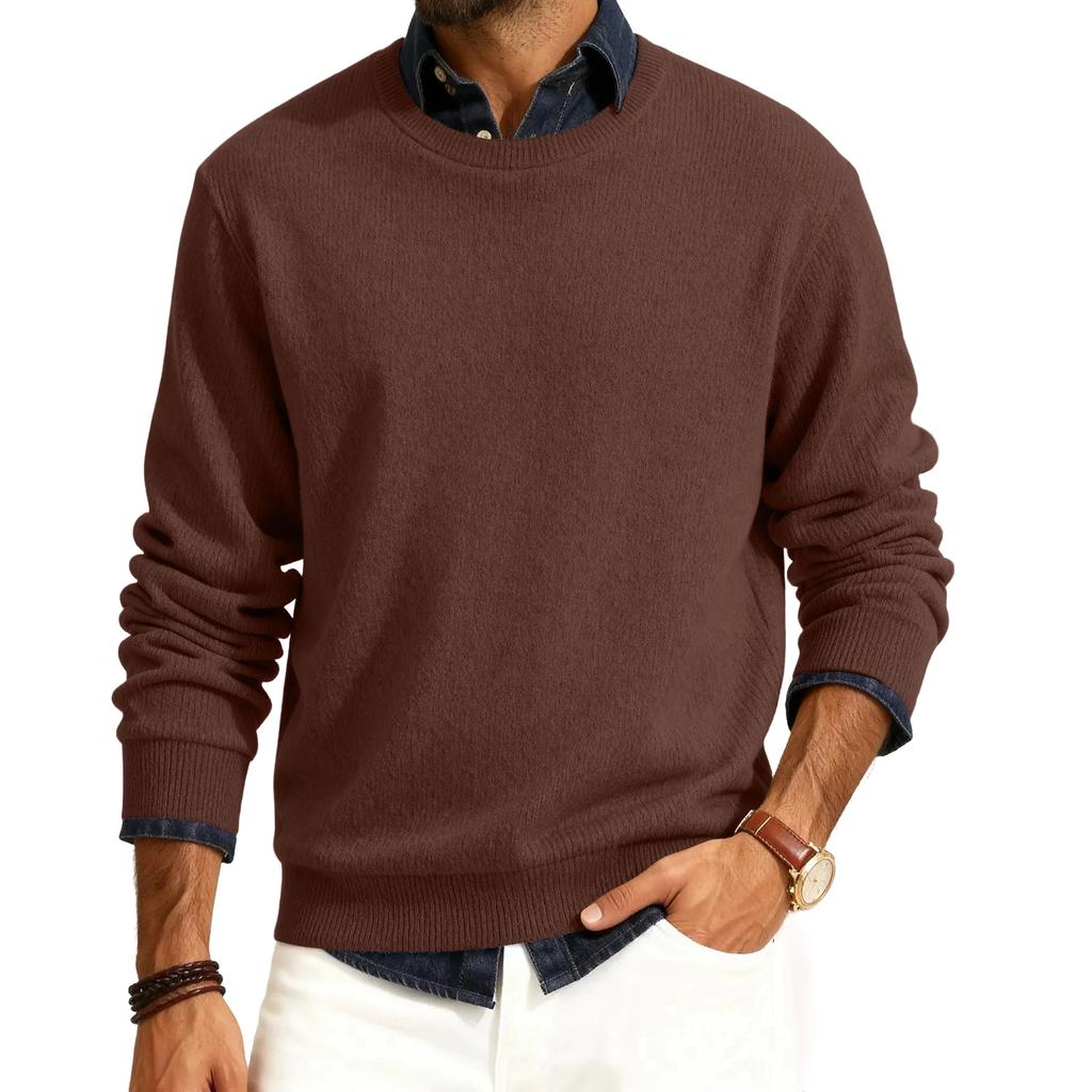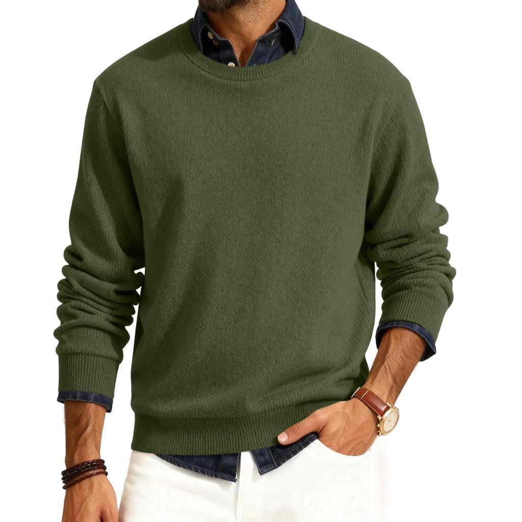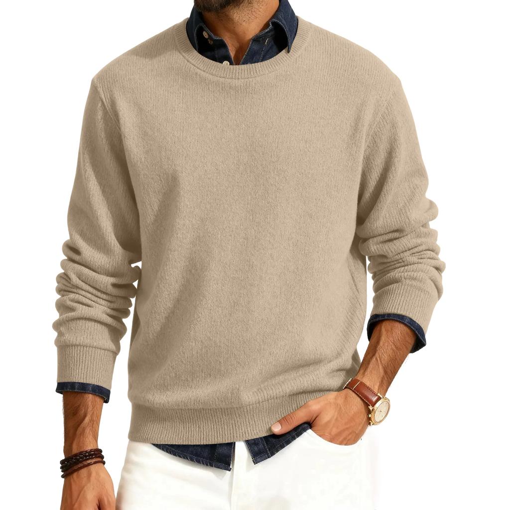 Мужской пуловер с круглым вырезом, длинными рукавами и рубчатой вязкой