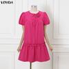 VONDA Женское летнее повседневное мини-платье с круглым вырезом, короткими рукавами и оборками — купить товар онлайн с бесплатной доставкой по всему миру!