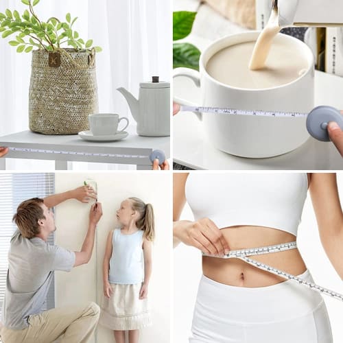 XSAJU 2m White Tape Measure, Set of 2, One-Touch Rewind, Double Graduations, Sewing Measurement