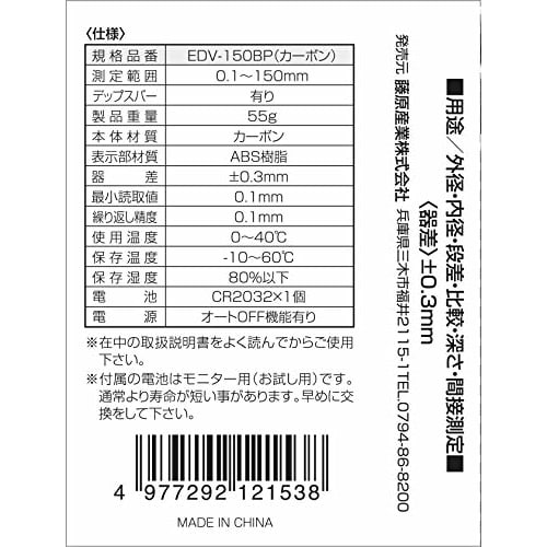 E-Value Digital Caliper EDV-150BP, Large 150mm Display, with Plastic Storage