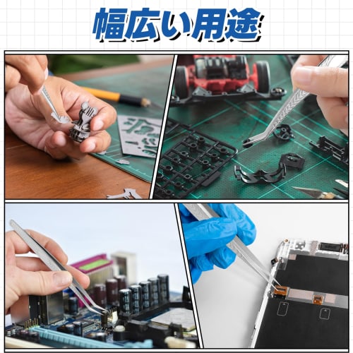 - Control the microscopic world with the highest precision The 0.4mm ultra-fine tip reliably captures parts less than 1mm.Precision plastic model tweezers are ideal for preventing water transfer decals from slipping and placing minute parts without worrying about damaging the surface.Applications Parts replacement/assembly work, screw gripping, plastic model/model/accessory production, UV resin, nail art, eyelash extensions, character valves, puzzles, water transfer decals, diamond art, beadwork, iron beads, handicrafts, dressmaking, thread grips, specimen production, paper crafts, porcelain art, dollhouses, water transfer decals, gardening, etc.We achieve the "certainty" that modelers and craftsmen seek.