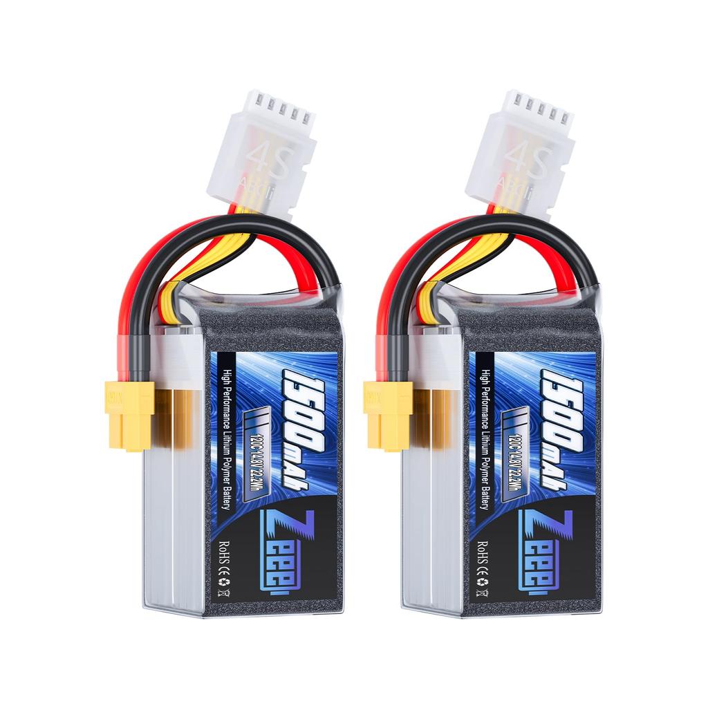 Аккумулятор Zeee 14.8V 120C 1500mAh 4S LiPo с разъемом XT60 для RC игрушек, FPV, RC шлемов, RC автомобилей, дронов и т.д.. (2-Pack)