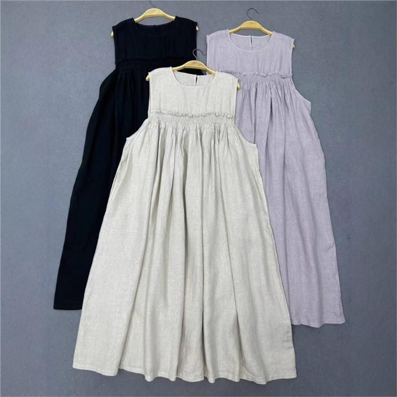 Johnature Casual Sleeveless Style Dress For Women Summer Casual Loose Simple Elastic Waist Dresses — купить товар онлайн с бесплатной доставкой по всему миру!
