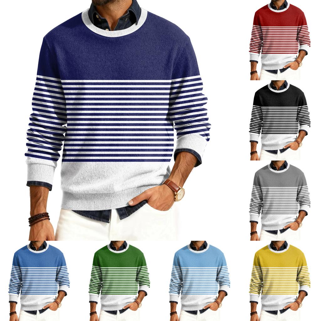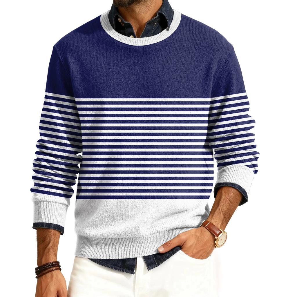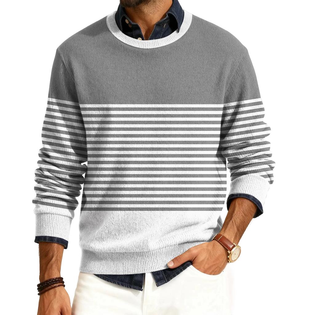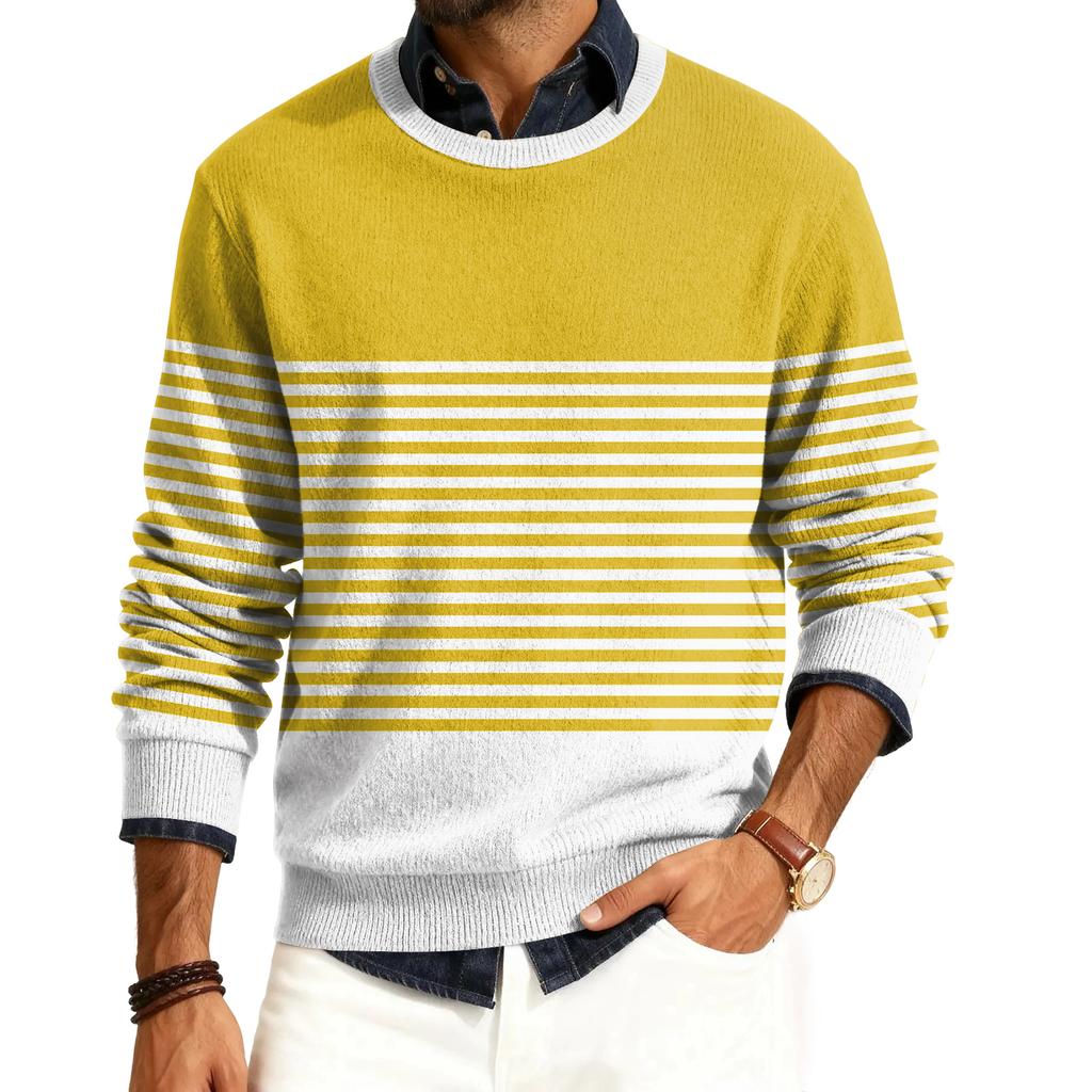 Мужской пуловер с круглым вырезом, длинными рукавами и рубчатой вязкой