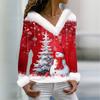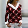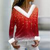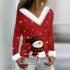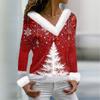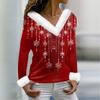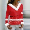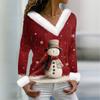 Женская футболка с рождественским принтом, длинный рукав, флисовый воротник, V-образный вырез, футболка