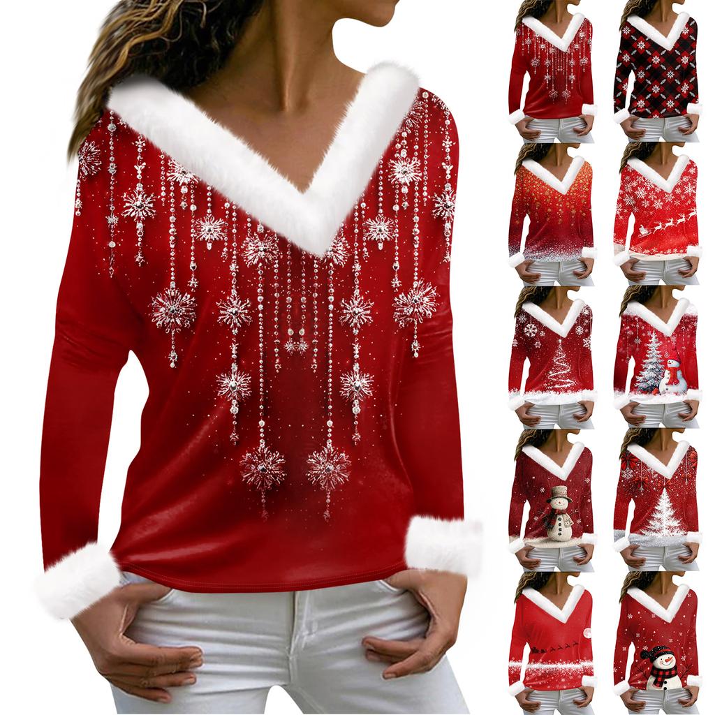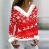 Женская футболка с рождественским принтом, длинный рукав, флисовый воротник, V-образный вырез, футболка — купить товар онлайн с бесплатной доставкой по всему миру!