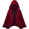 Красное Вино Кейп Короткий Кейп С Рюшами Кружево Плиссированное Кружево Кейп С Капюшоном Бархат