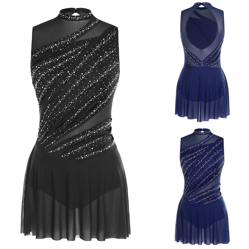 Женский гимнастический балетный лирический танцевальный купальник-платье, украшенный стразами, платье с сетчатой юбкой, костюм для современного танца
