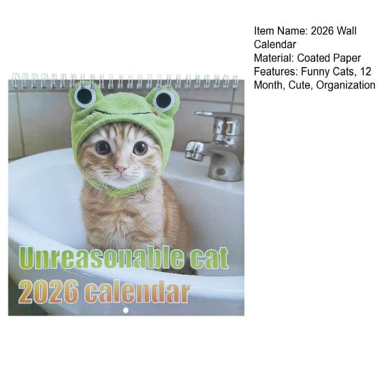 Причудливые дизайны кошек: Сделайте каждый день 2026 года ярче с помощью уморительных страниц календаря «Иррациональный кот», на которых представлены уникальные принты очаровательных котят в забавных позах.. Добавьте нотку радости и смеха в ваш домашний офис, кухню или рабочее пространство с этим забавным настенным календарем, который вызывает разговоры и улыбки.