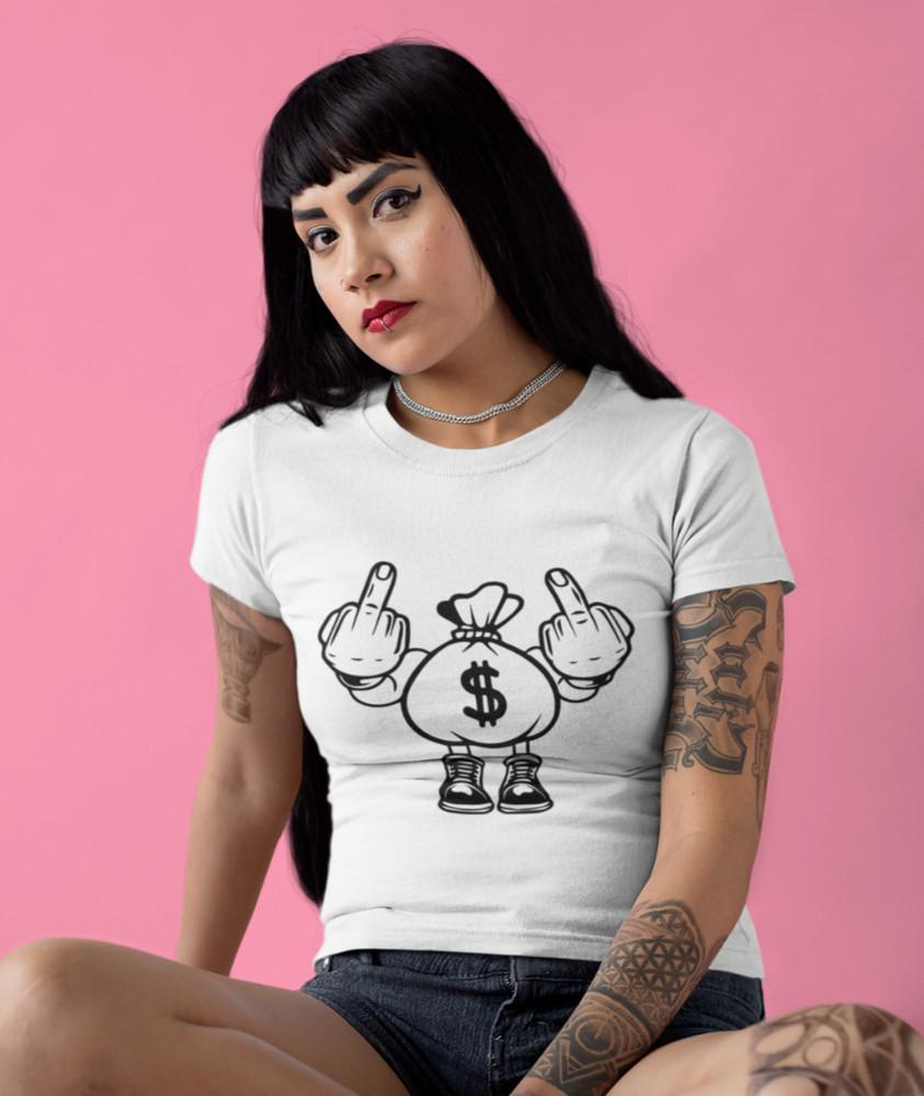 Lustiges Fuck You Fick dich Mittelfinger FCK Damen Shirt Tailliert Baumwolle — купить товар онлайн с бесплатной доставкой по всему миру!