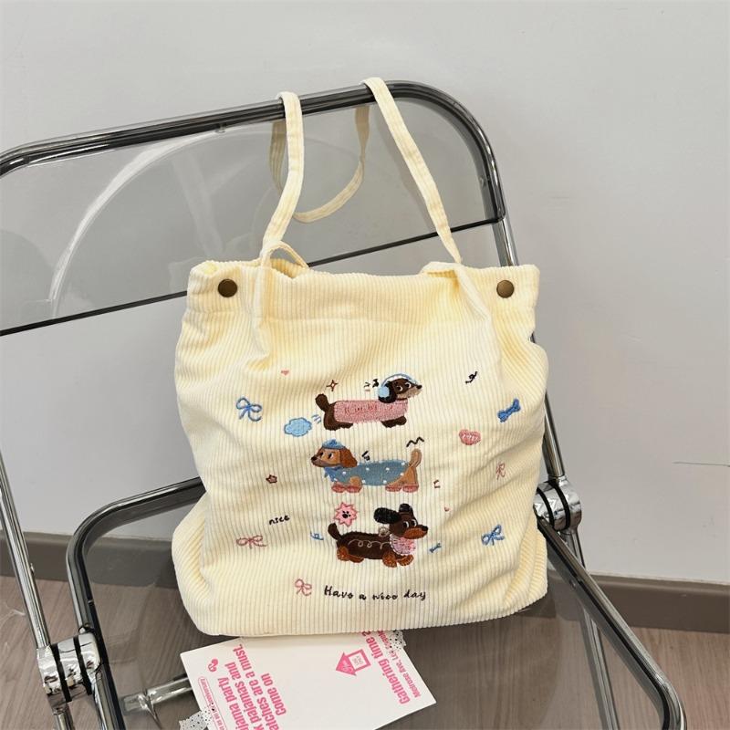 Милая вышитая мультяшная собачка на осень и зиму вельветовая сумка женская школьная сумка студенческая сумка большой вместимости через плечо