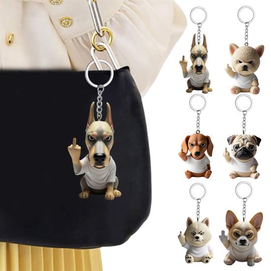 Забавный 3D дизайн собаки: Сделайте заявление с этим брелоком с забавными 3D-скульптурами собак, демонстрирующих дерзкий жест средним пальцем.. Внесите юмор и характер в ваши повседневные предметы первой необходимости, выделяясь своим смелым и игривым дизайном.