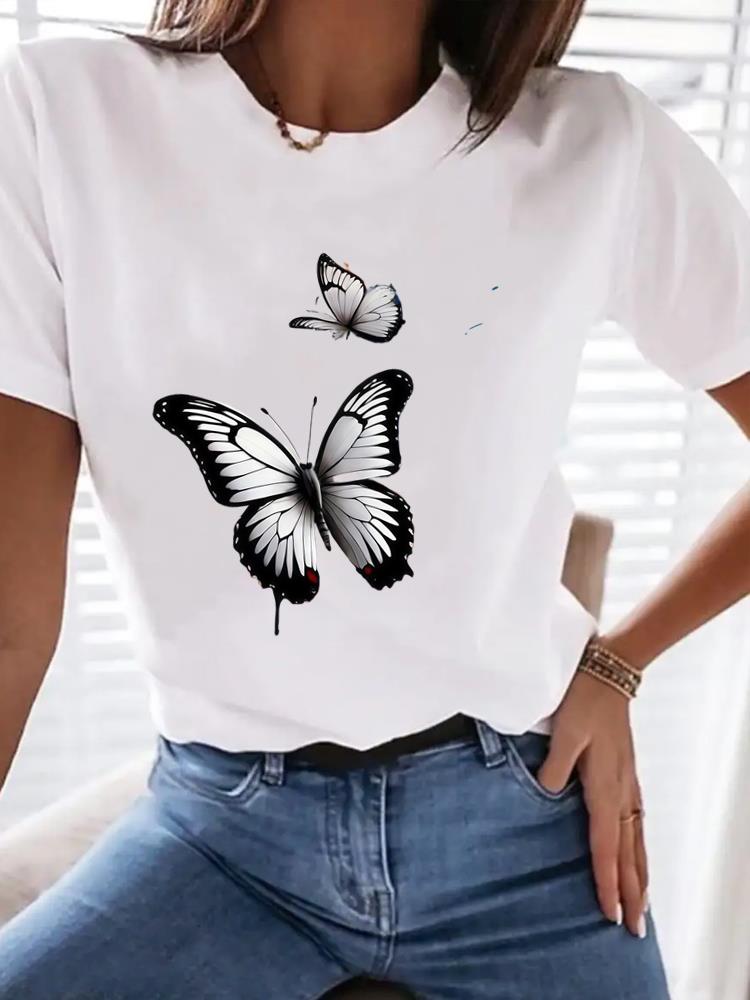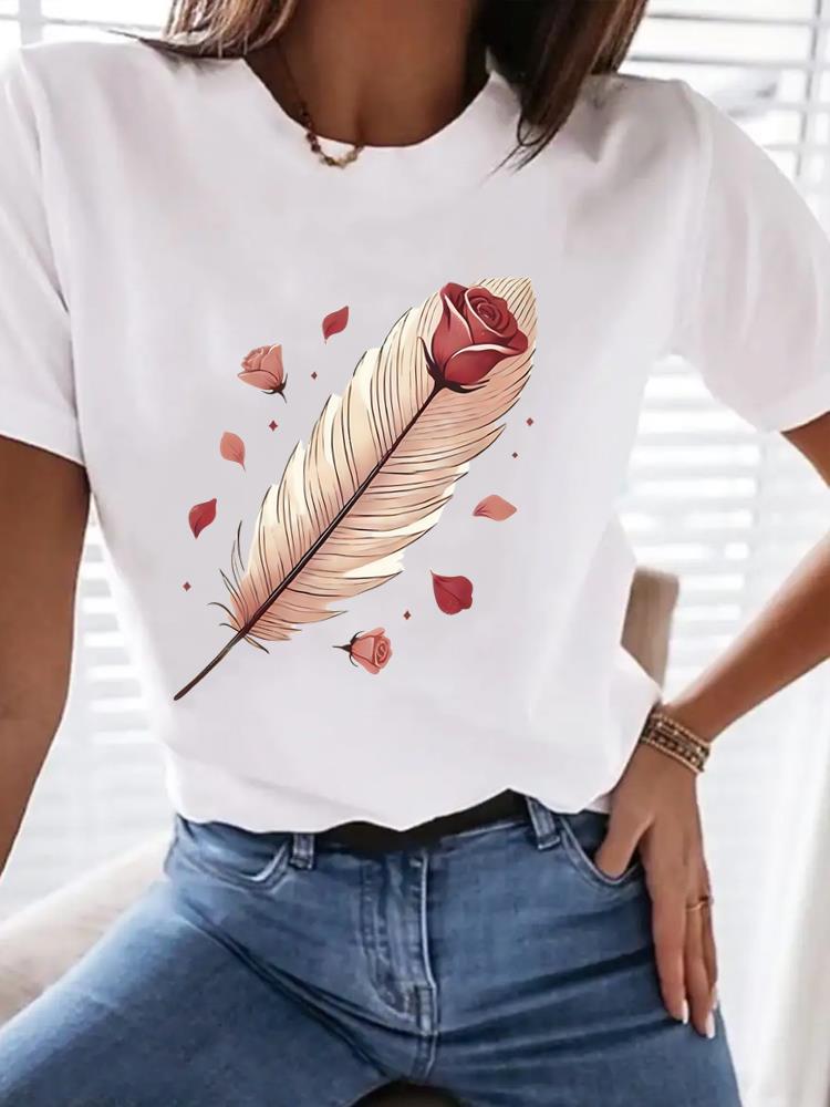 (Азиатский размер) Топ футболка тренд милая Женская одежда Футболка Женская с принтом Мода Женская с коротким рукавом Графические футболки