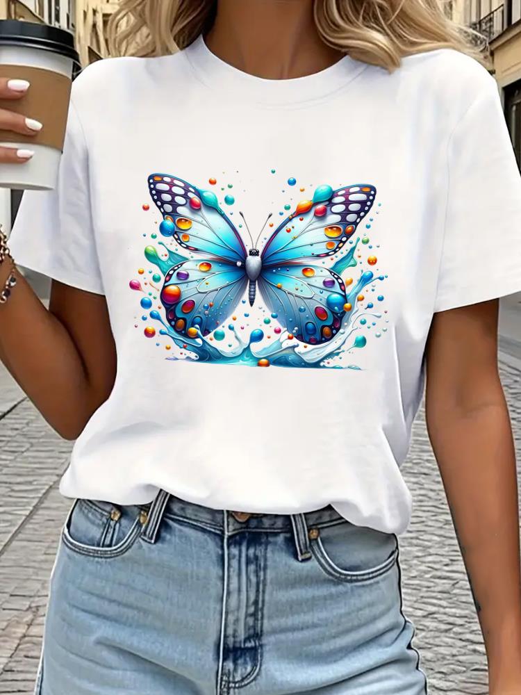 (Азиатский размер) Футболка с принтом женская женская модная одежда бабочка тренд 90-х футболка с коротким рукавом женские графические футболки