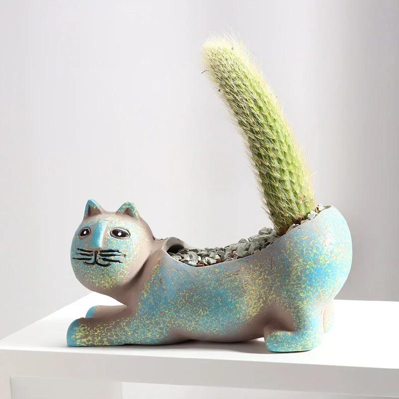 Керамический цветочный горшок, милый кот, горшки для суккулентов, ваза, имитация животных, мультяшные горшки, кашпо для комнатных растений, украшение дома