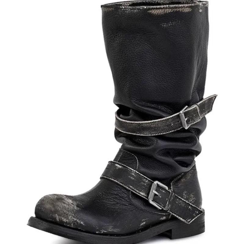 Винтажные туфли на платформе с пряжкой, стильные мотоциклетные женские туфли с квадратным носком на массивном высоком каблуке до середины икры, ретро байкерские ботинки