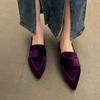 Женские роскошные бархатные мокасины Модные лоферы с острым носком Женские 2025 Весна Новые фиолетовые велюровые балетки