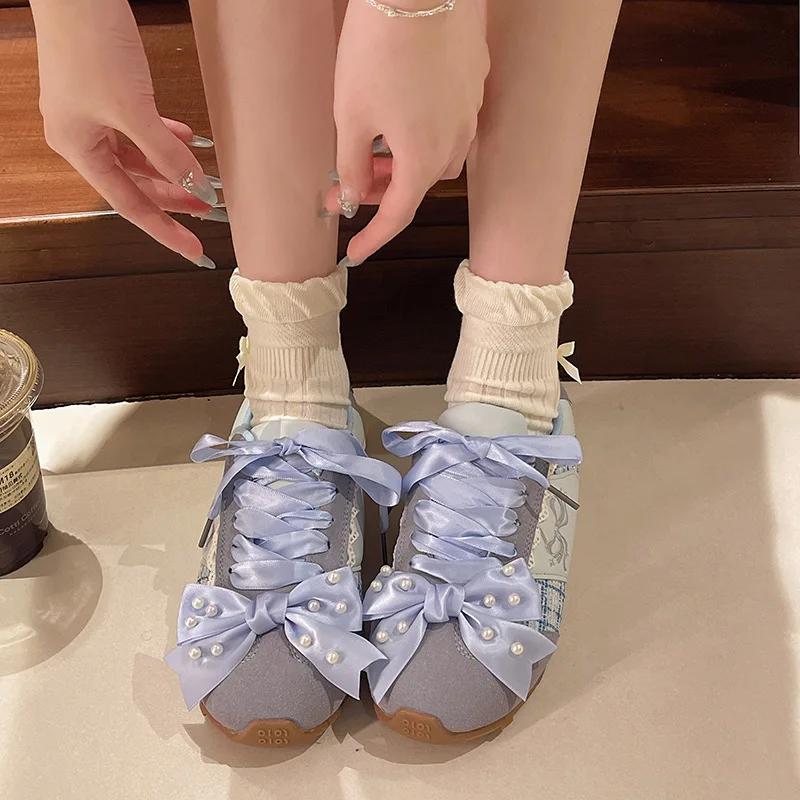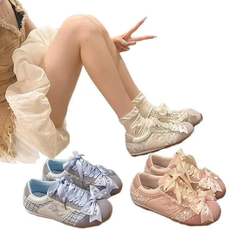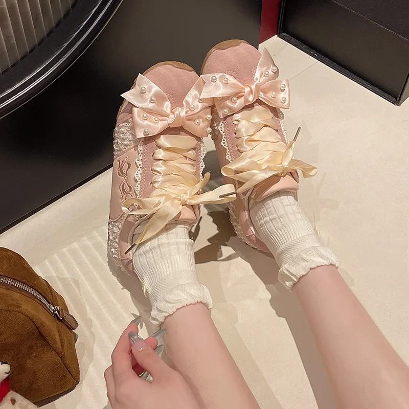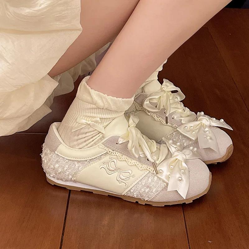Кожаная версия Маленькие балетки Декин Женская повседневная спортивная обувь с бантом-бабочкой Резиновая подошва Удобный средний каблук