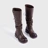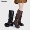 Осень Зима Лакированная Кожа Панк Готика Платформа Женские Сапоги до Колена Модные Ботильоны Мотоциклетные Ботинки с Кнопками-Заклепками на Каблуке