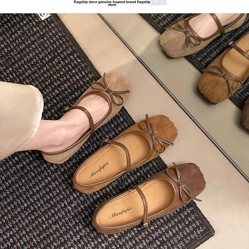 Французский бант-бабочка Слипоны Мэри Джейн Балетки Женские Весенние Новые Туфли на плоском каблуке Простой круглый носок Резиновая подошва