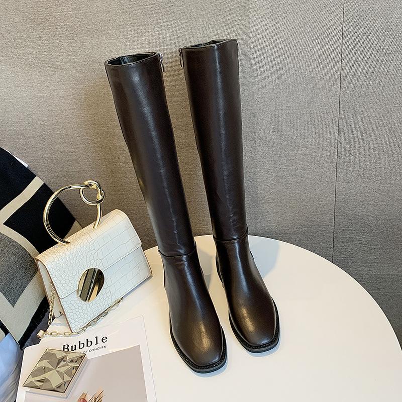 2025 Зимние Хлопковые Женские Сапоги до Колена Модные Молнии Женские Элегантные На Низком Каблуке Длинные Ботильоны Мягкая Кожа Женская Обувь