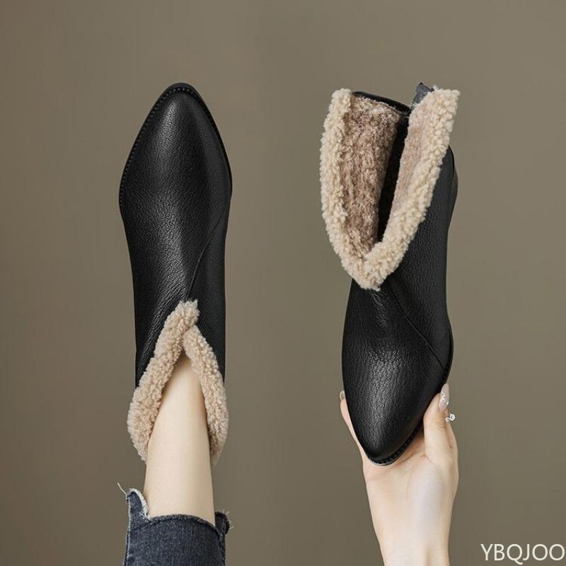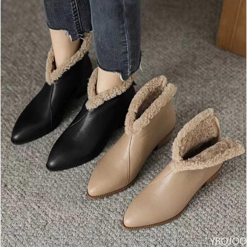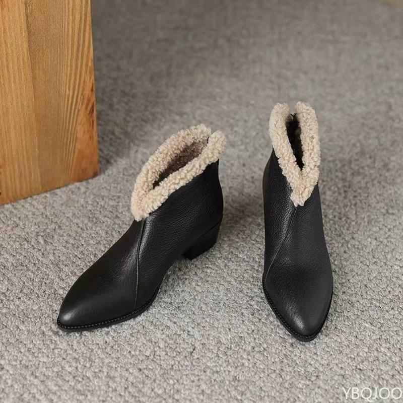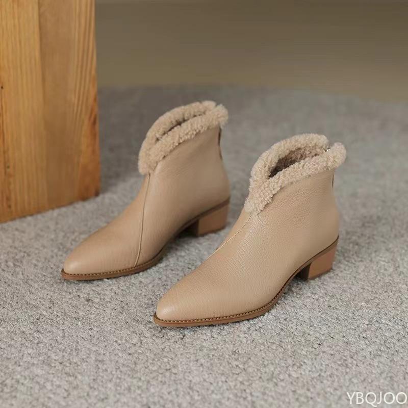 Осень зима новые ретро остроносые теплые короткие ботинки толстый каблук универсальные простые удобные темперамент женские ботинки