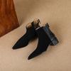 Осень и Зима Новые Женские Ботильоны на Толстом Каблуке Модные Остроносые Ботильоны на Молнии Сзади Ретро Замшевые Удобные Короткие Ботинки