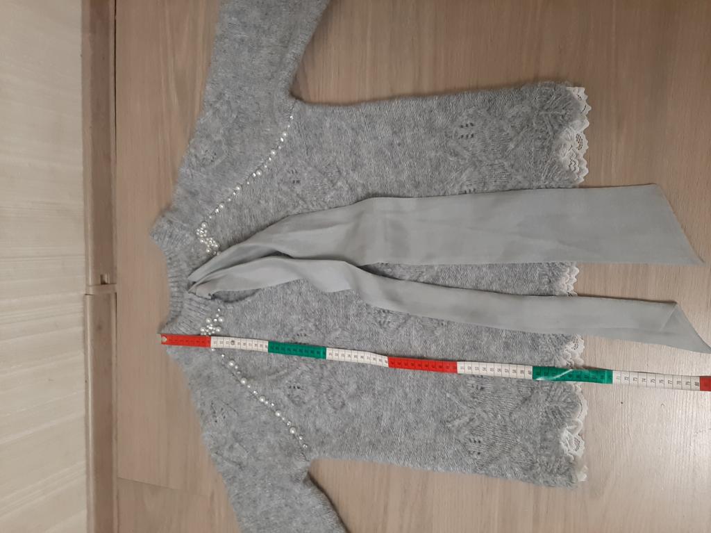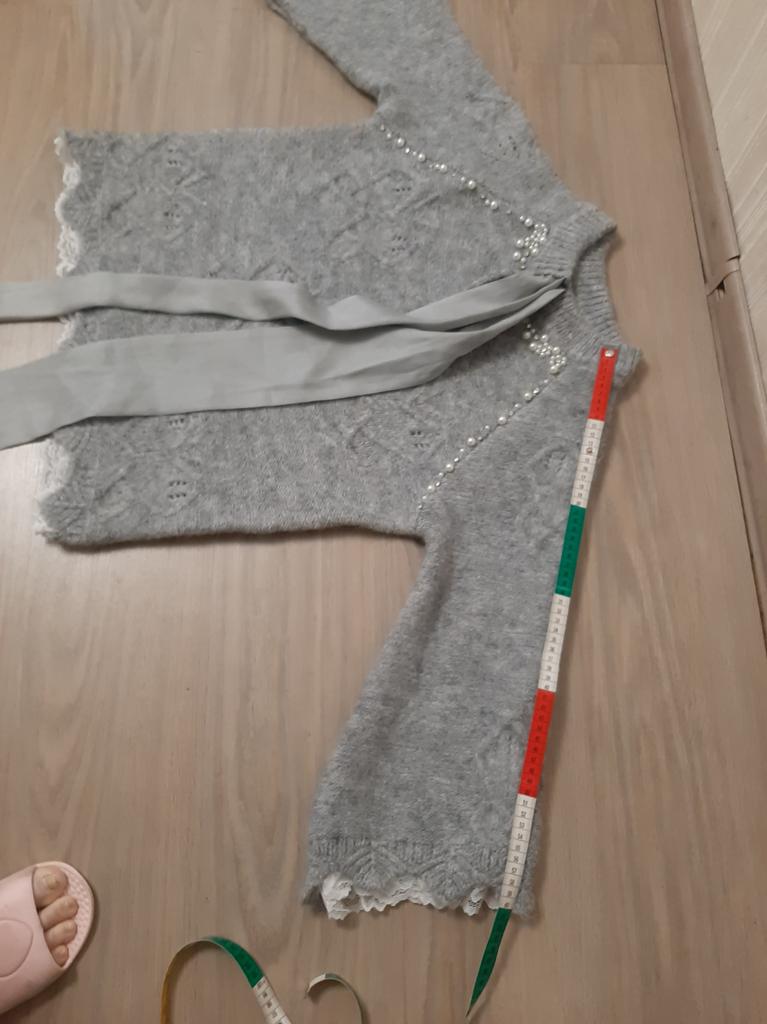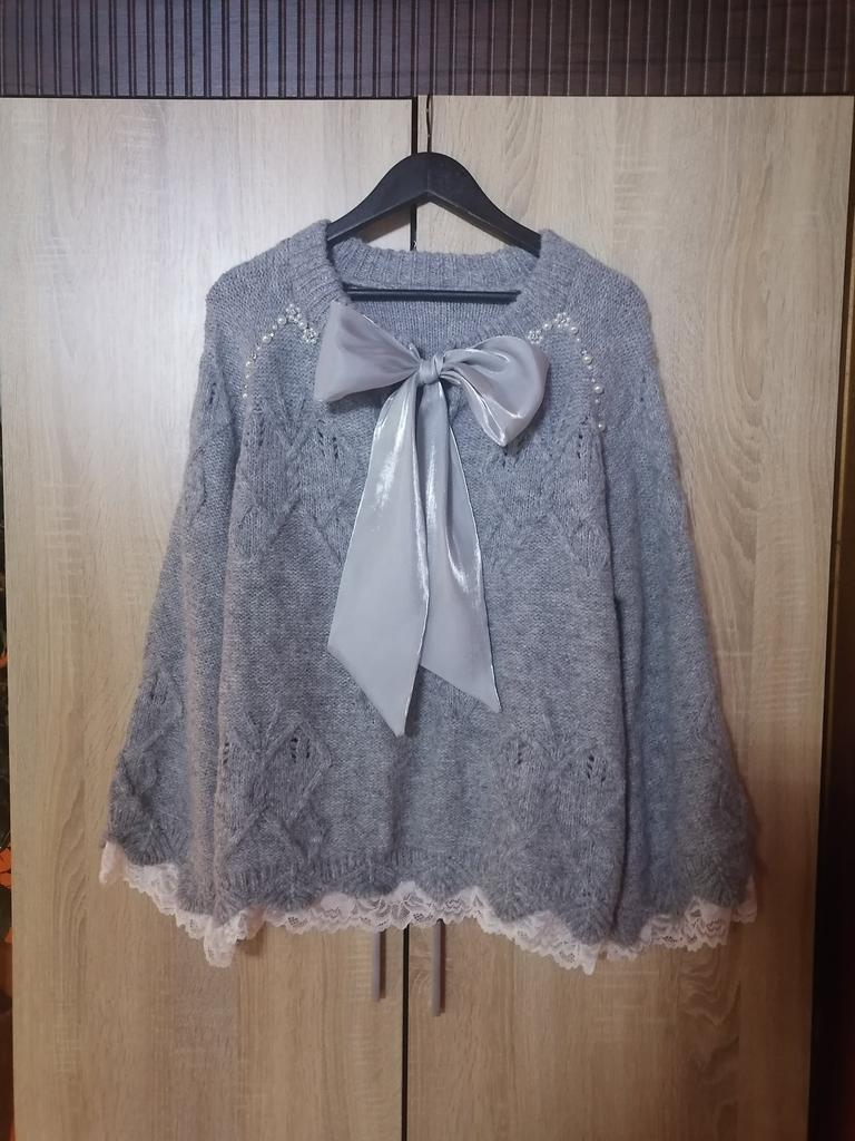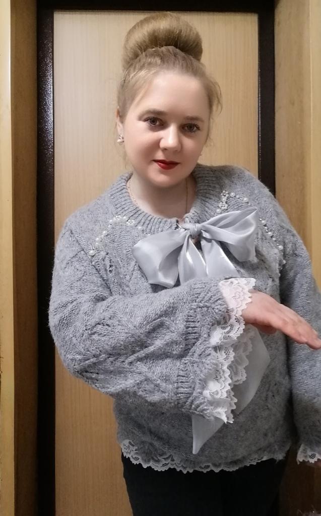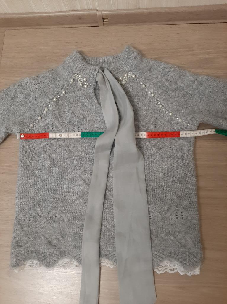 ЖЕНСКИЙ СВИТЕР. ❤️ Свитер упакован в прозрачный пакет. Ни бирок, ни этикетки не было. У продавца представлены 2 расцветки на выбор. ❤️ Продавец указывает, что ткань - терилен, а это синтетический материал. На ощупь свитер, как - будто из шерсти, очень мягкий, приятный к телу, не колется. Главным украшением является большой бант из широкой атласной ленты. По линии плеча и на воротнике проходит линия из страз и бусин. Они приклеены, поэтому при стирке нужно быть очень аккуратным. Рукава и низ свитера отделаны полоской белого кружева. Это прям очень изящно выглядит 🤩. ❤️ На свои параметры рост 162 см, Ог 112 см, От 92 см, Об 112 см заказала размер XXL. Размерная сетка у продавца верная. Свитер мне прекрасно подошёл. Только если б внизу он был пошире, было бы лучше. Свитер, конечно, больше подойдёт для праздничного события, чем на повседневку. Он прекрасен, но, лично для себя, отметила один минус. Большой бант визуально отягощает верх, плечи смотрятся шире и грудь больше. Но это мне так кажется 🤔. Заказом довольна, рекомендую 👍! Желаю всем только удачных покупок🛍️! 💋💋💋