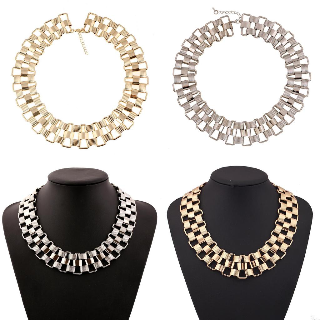 Это геометрическое металлическое колье-чокер имеет гладкую конструкцию из сплава с гальваническим покрытием в серебристых и золотистых тонах. Оно предлагает универсальную носку как для мужчин, так и для женщин.. Идеально подходит для повседневных прогулок, сувениров из путешествий или подарков сотрудникам, для ухода требуется протирание влажной тканью.