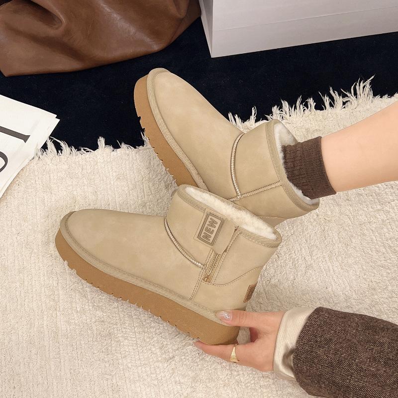 2025 зима новые женские сноубутсы на плоской подошве с коротким голенищем, северо-восточные, с напуском, утолщенные, водонепроницаемые и теплые, с интегрированным мехом, женская обувь