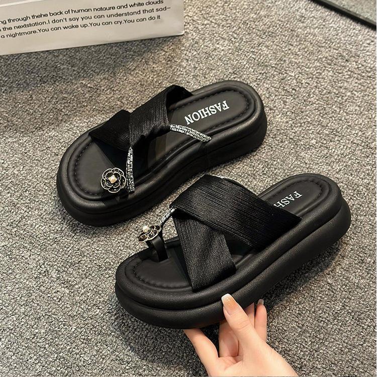 Красивые тапочки женские 2025 лето новые французская камелия уличные толстоподошвенные с закрытым носком прохладные тапочки мягкая подошва пляжная обувь