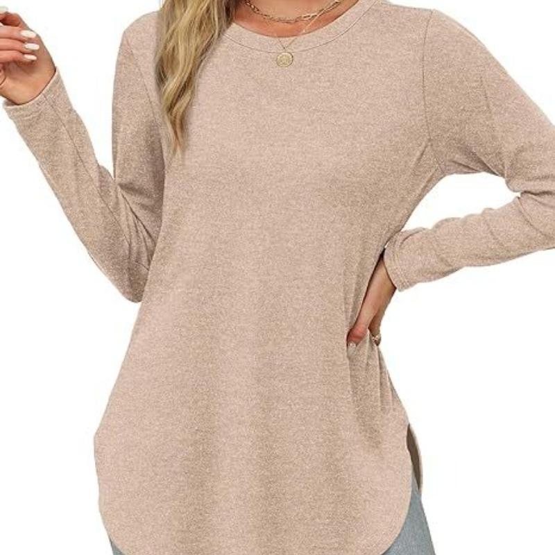 Женский топ с длинными рукавами, однотонный, с длинным рукавом, с круглым вырезом, свободного кроя, повседневная базовая футболка