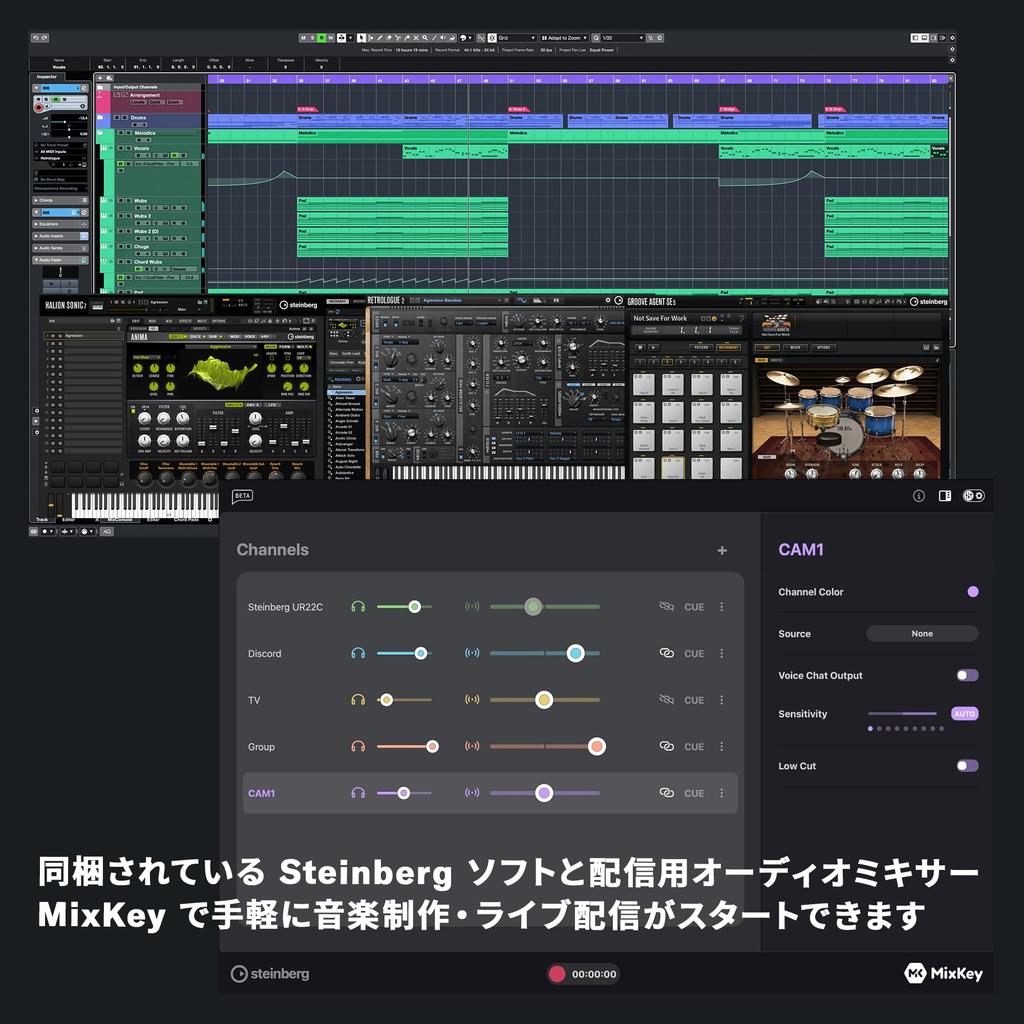 YAMAHA UR22MK3 B USB 2.0 Аудиоинтерфейс, 24-бит/192 кГц, 2 входа/2 выхода, Функция Loopback, для Музыкального Производства, Записи и Стриминга, Черный