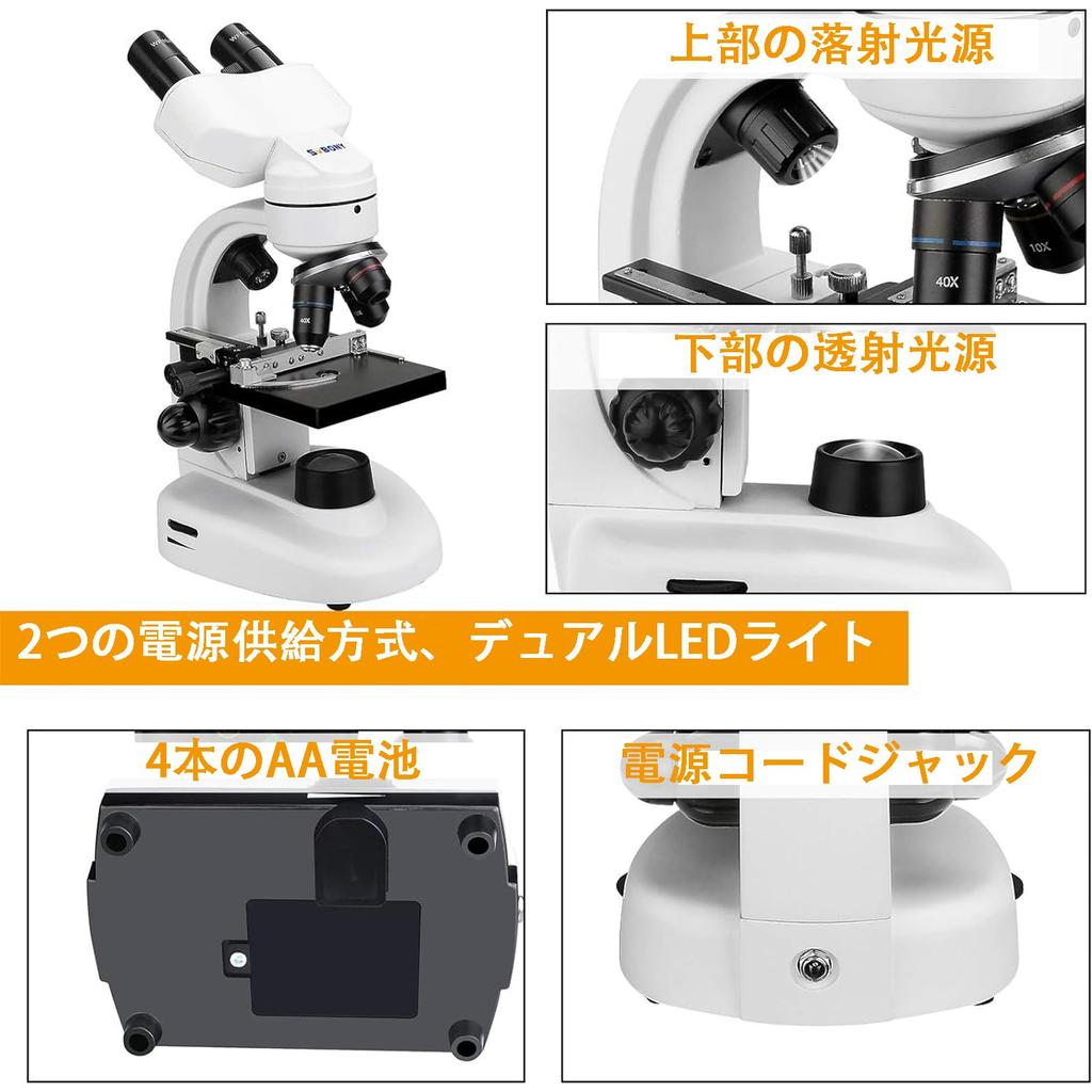 SVBONY SV605 Compound Binocular Biological Microscope with 80x-1600x High Magnification Wide Field of View, WF10X and WF20X Eyepieces, 4X, 10X, and