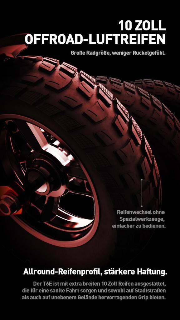 Tires: 10-inch pneumatic tires for off-road